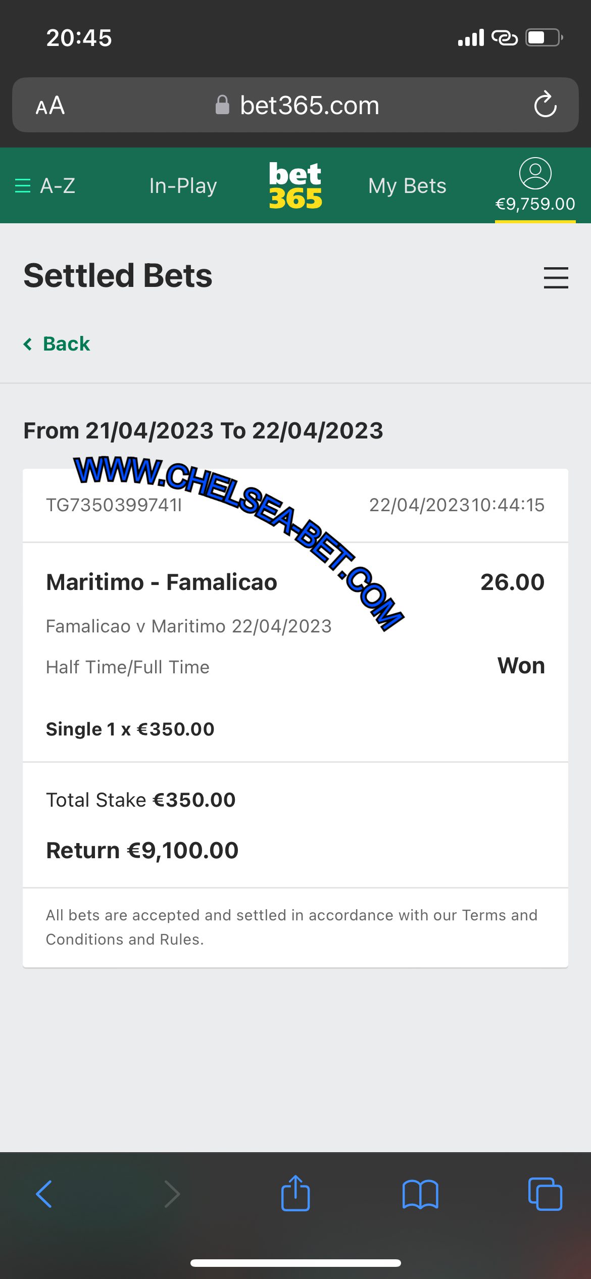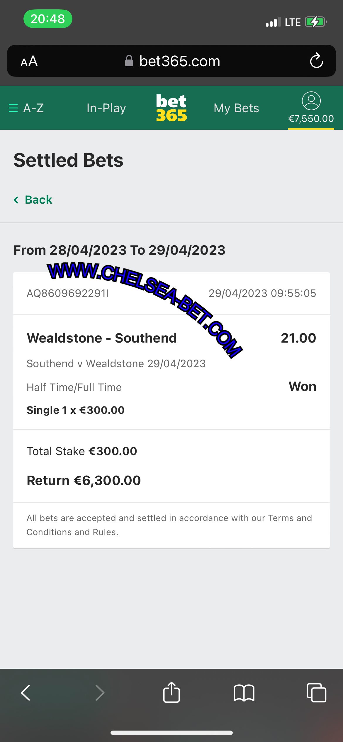 MOBILE BET365 & WHATSAPP PROOF FROM (04/06) 31.00 ODDS WON