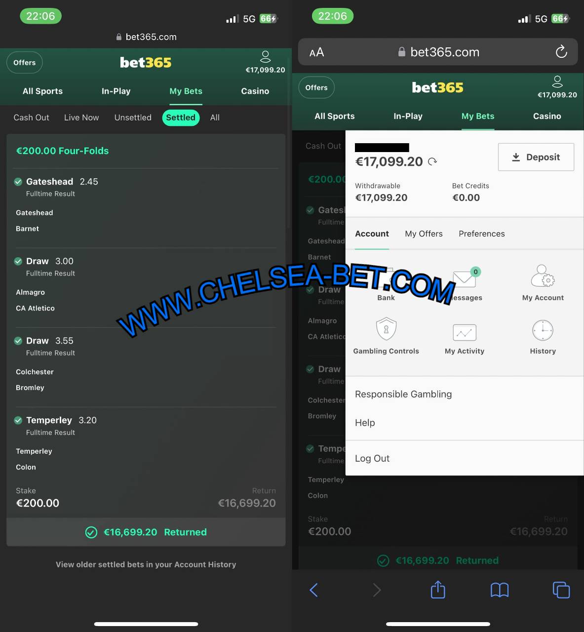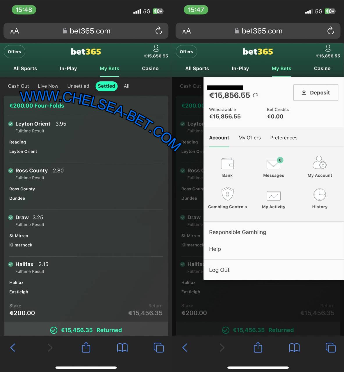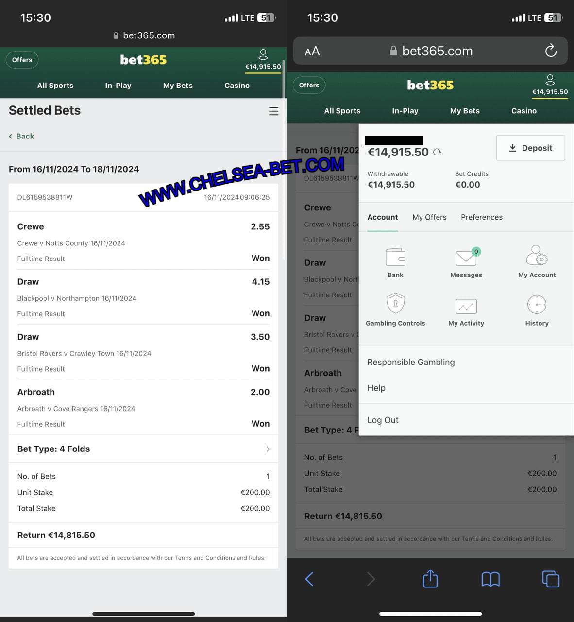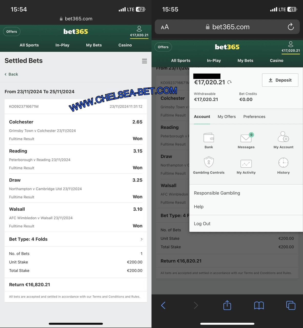 Combo VIP Ticket Fixed Matches (BET365 PHONE SCREENSHOT)