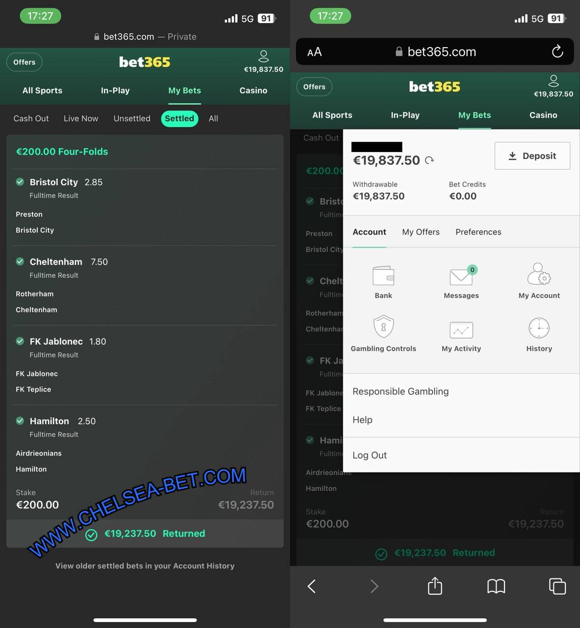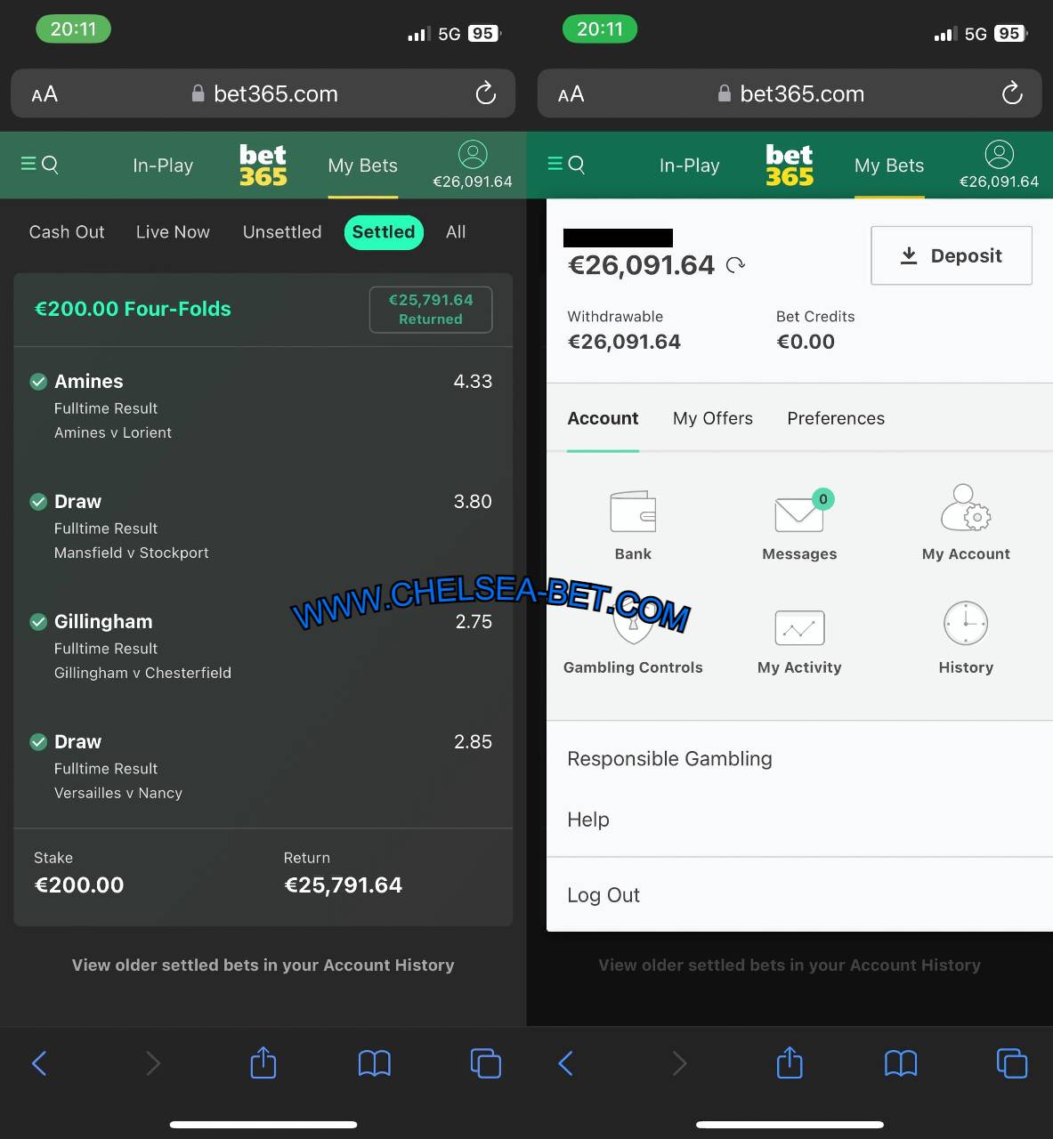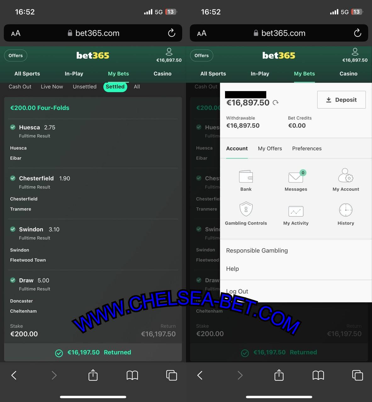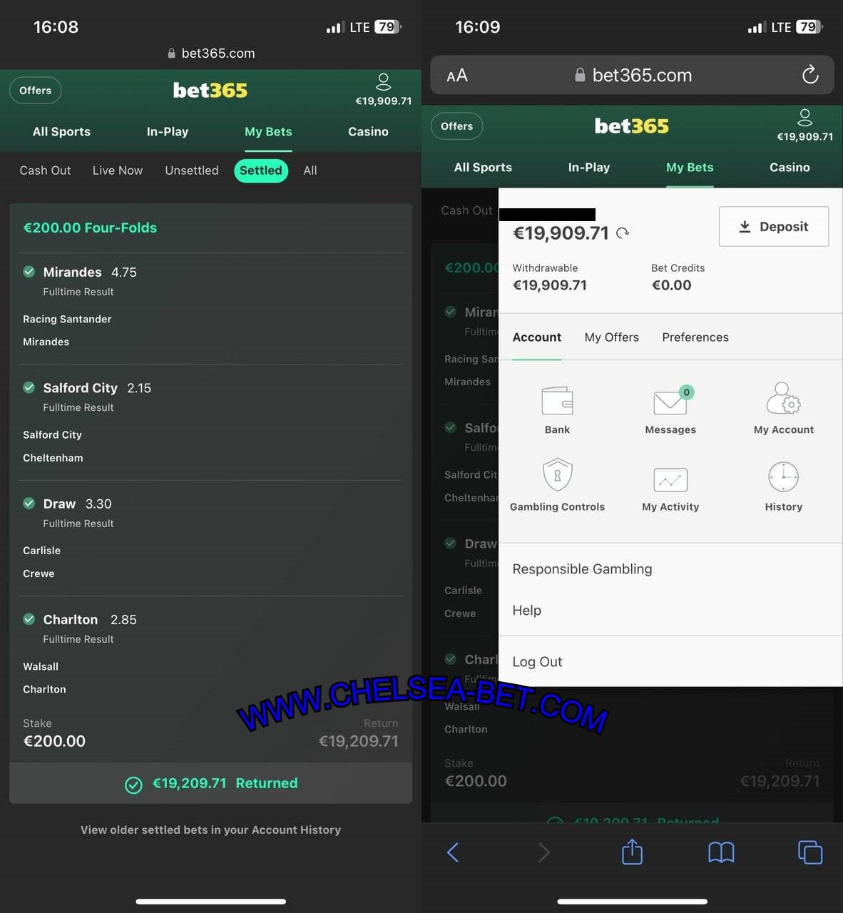 Combo VIP Ticket 1X2 Fixed Matches (BET365 MOBILE SCREENSHOT)