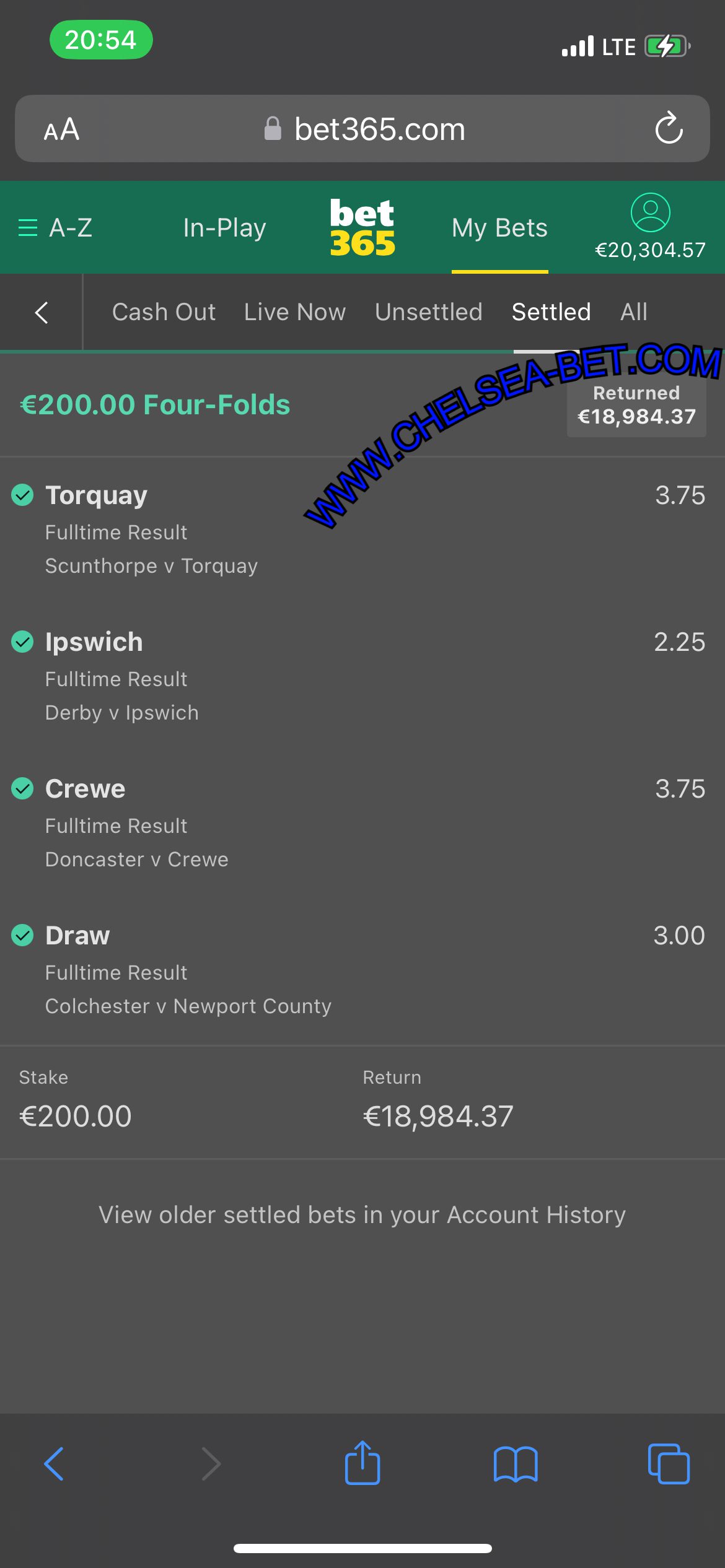 | BET365 | TOTAL ODD 23.00 |