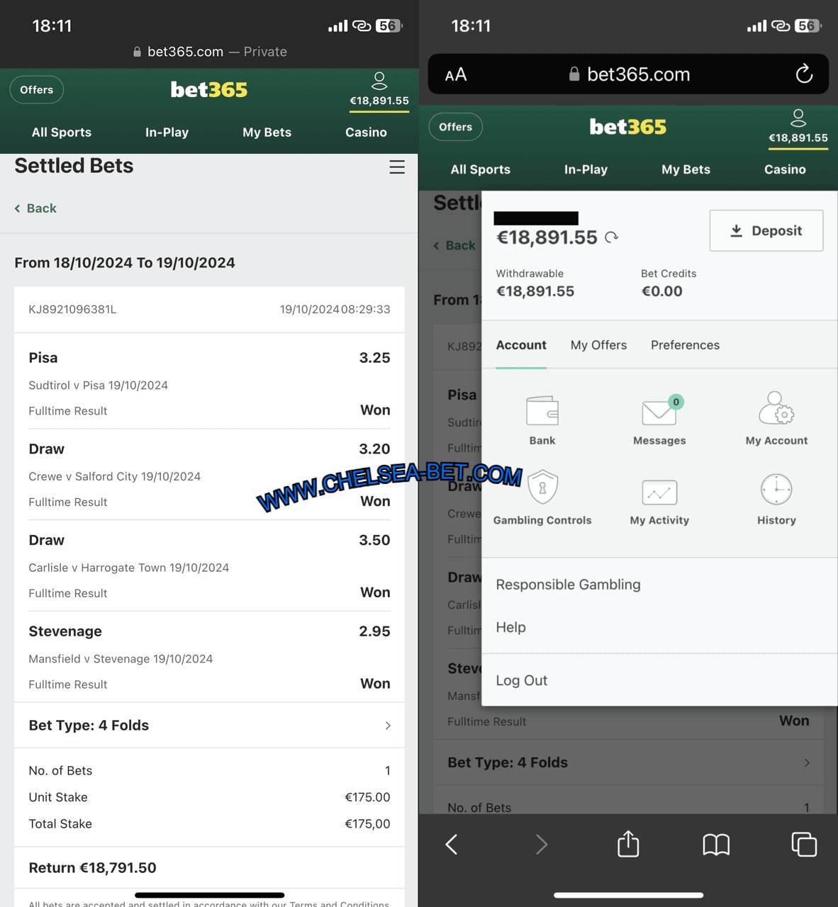 | BET365 | TOTAL ODD 18.00 |